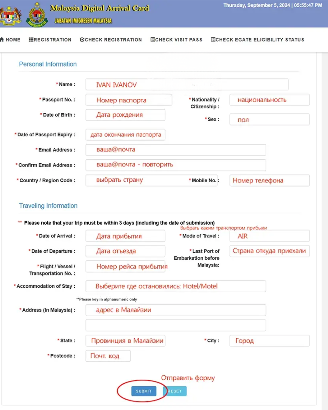 Как заполнить форму прибытия в Малайзию — MDAC